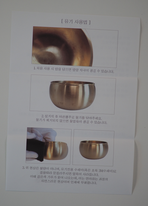 방짜 유기는 식사 때 마다 밥그릇과 찬그릇 그리고 수저로 매일 매일 사용 중이다.