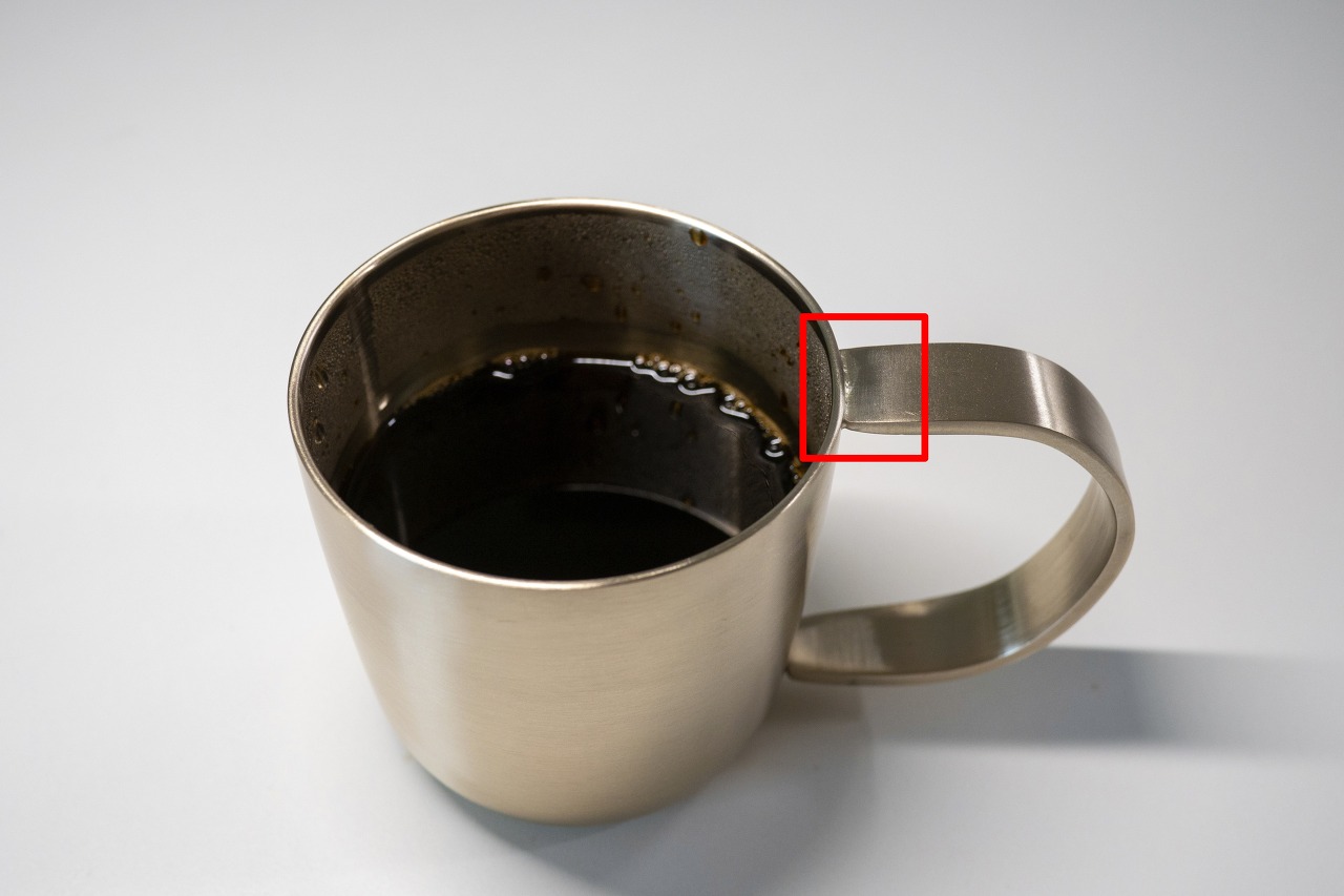 가장 큰 관심사였던 놋담 '반달 머그컵'에 뜨거운 아메리카노를 드립으로 내려 보았다. 손잡이 부분은 모든 작업이 끝날 때 까지 뜨겁지 않았다. 2분 정도 지나니 미지근한 정도였다.