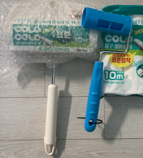 규격이 동일하여 다이소에서 구입한 파란색 롤러에도 잘 맞는다. 롤러는 고로고로 제품이 파지와 클리너 장착에 더 좋다.