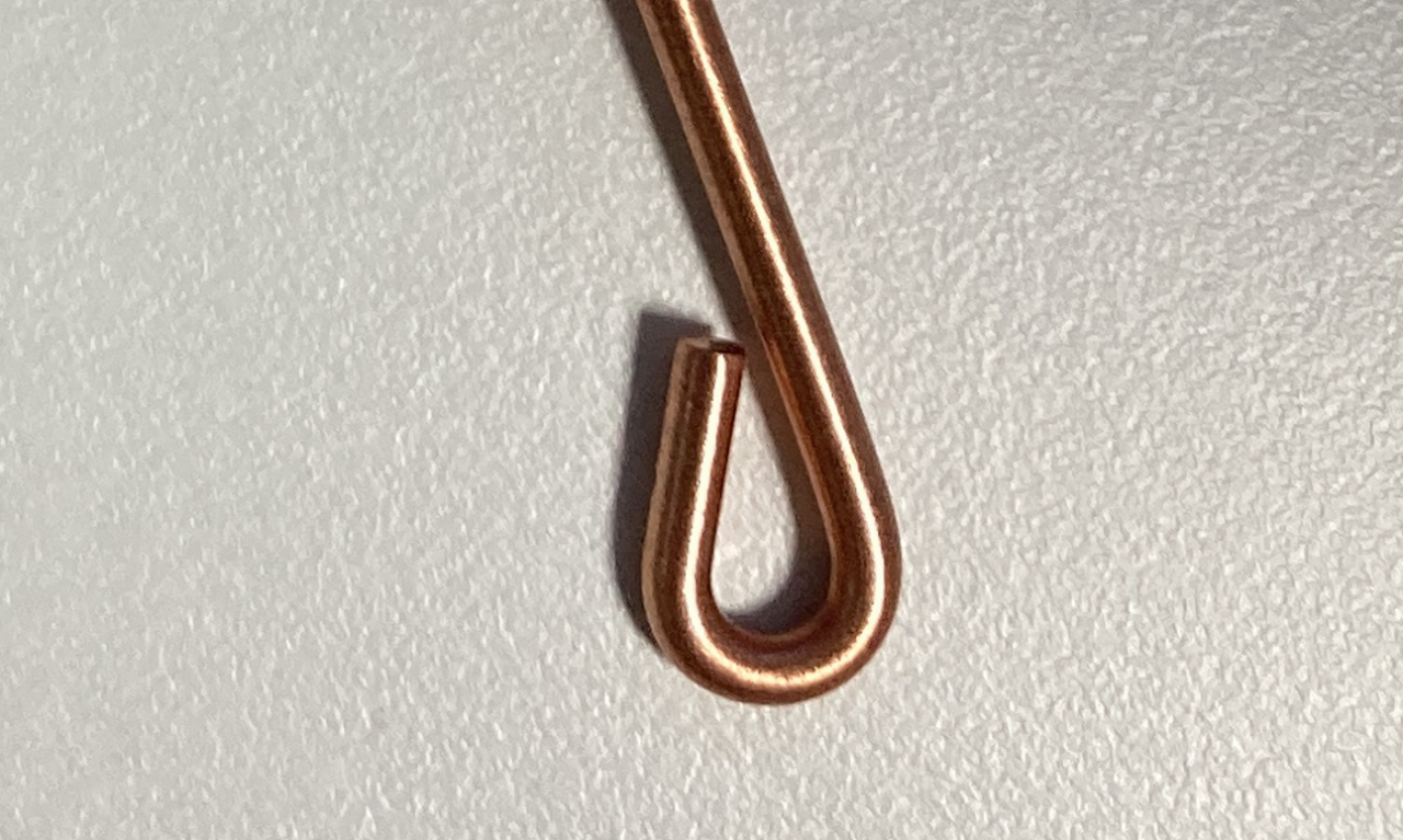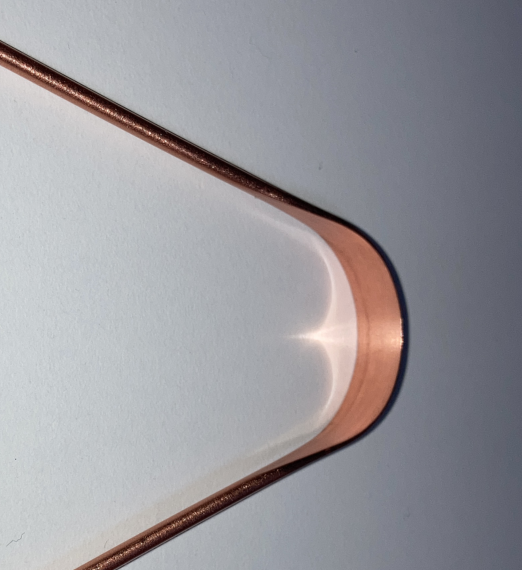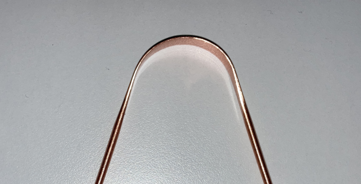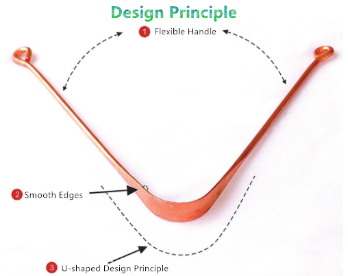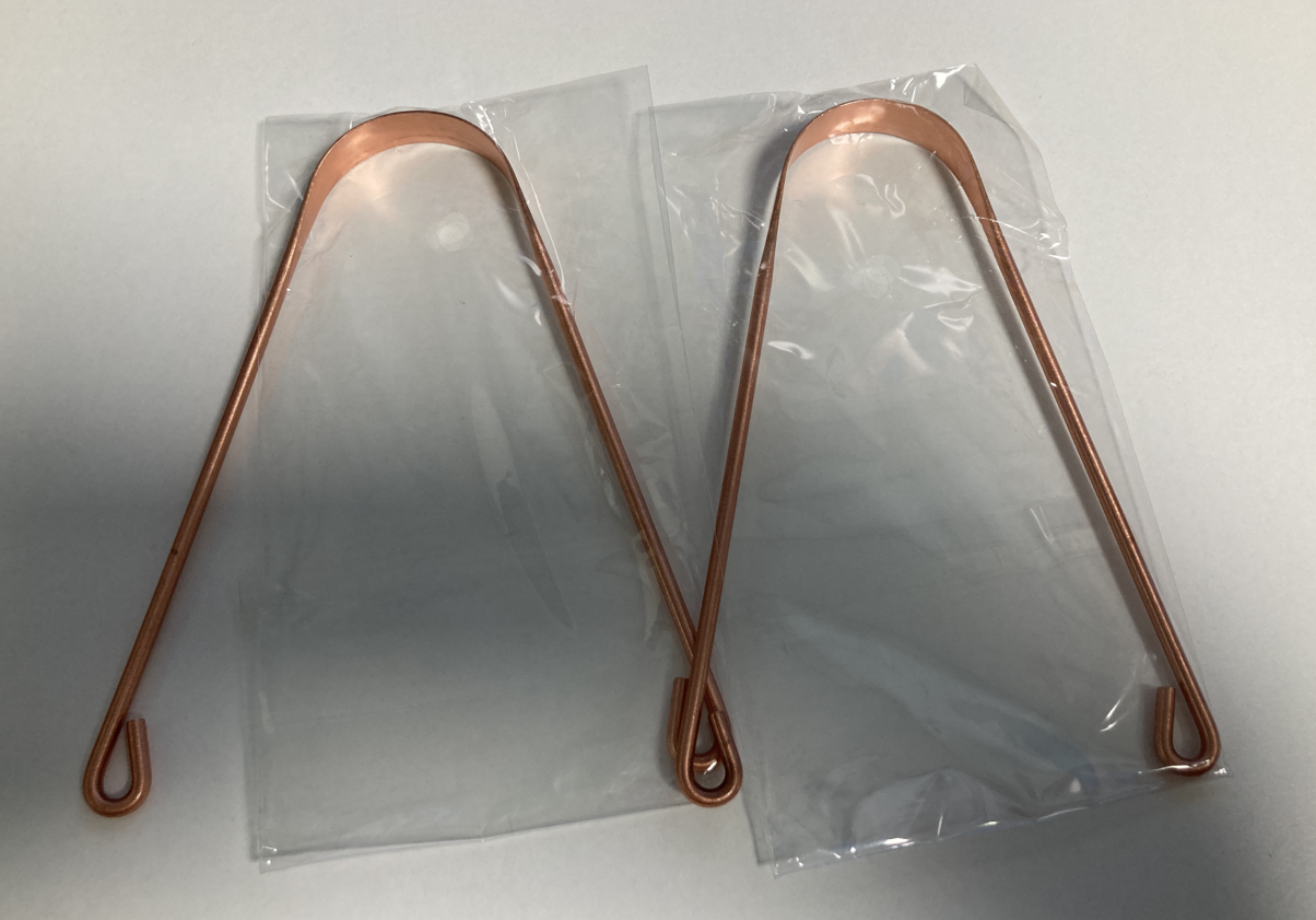 구리 혀 클리너, 전체가 순수 구리로 제작되어 있다. 그래서 손잡이 부분은 조잡한데 날카로운 부분이 없어서 잡는데 문제는 없다.