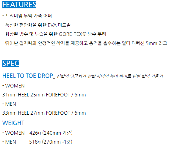 가장 끌리는 등산화다. 발바닥 밑창의 내구성이 안좋다는 소문이 있다.