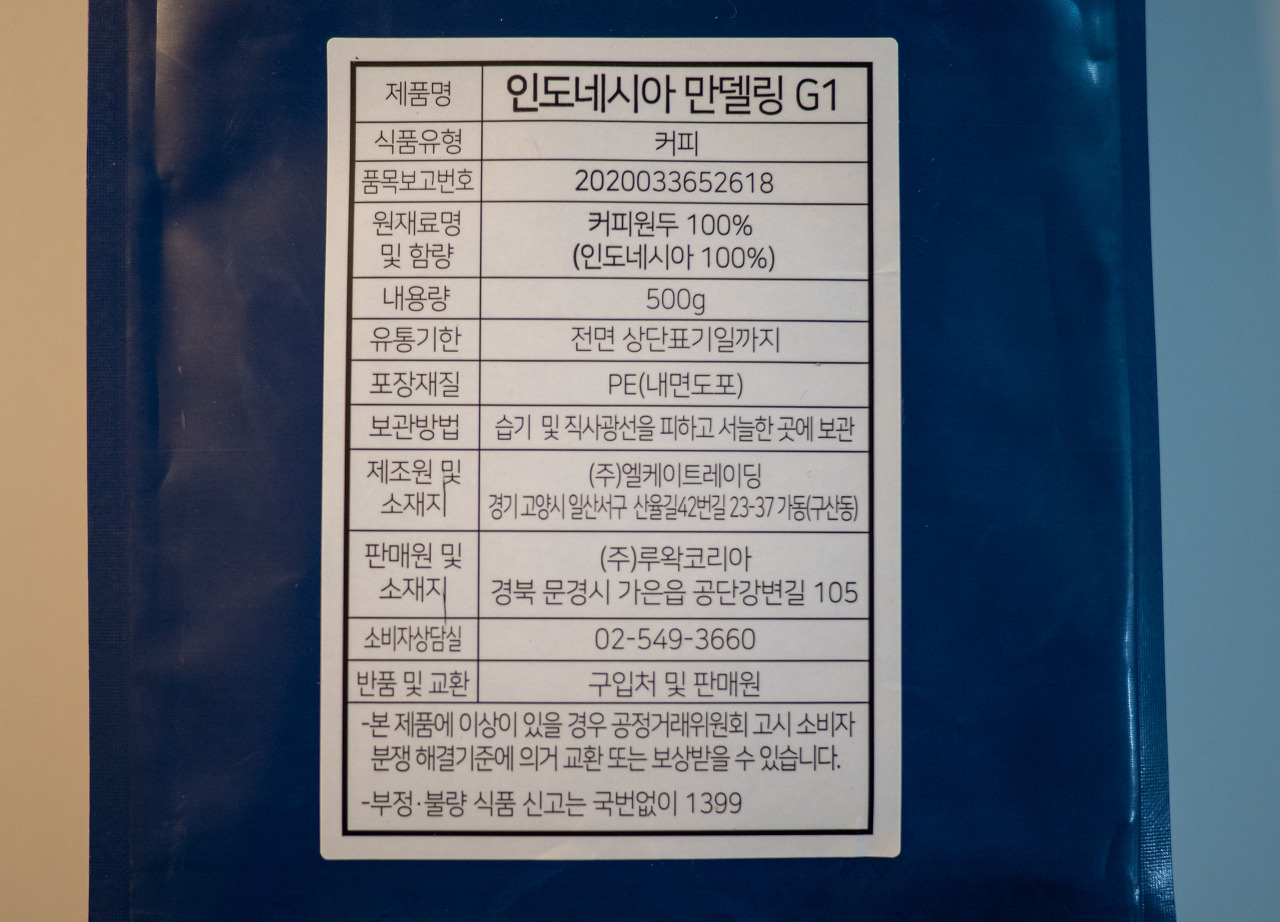 '루왁코리아 보나피데 블렌딩 원두커피 피넛 블렌드'가 너무 맛없어서 재구매를 망설였다. 그래서 싱글오리진을 순차적으로 음용해보고자 인도네시아 수마트라 만델링으로 구입했다.