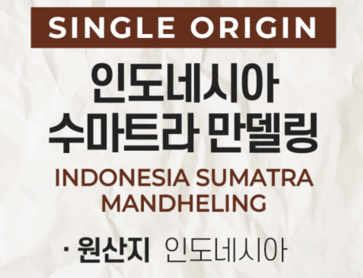 싱글오리진 인도네시아 수마트라 만델링 로스팅 원두커피