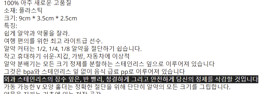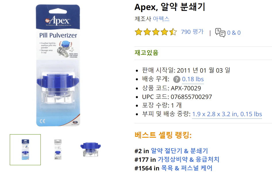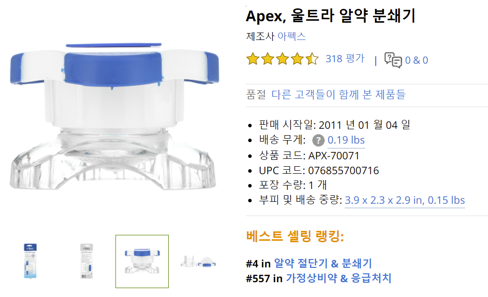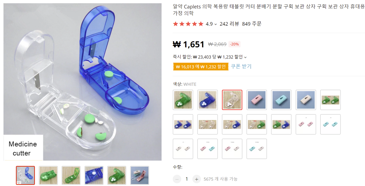 알리익스프레스는 배송이 오래걸린다. 만약, 장기간 알약절단기를 사용한다면 알리익스프레스 보다는 아이허브에서 구매하는게 좋겠다. 중요한 칼날의 성분 때문이라도....