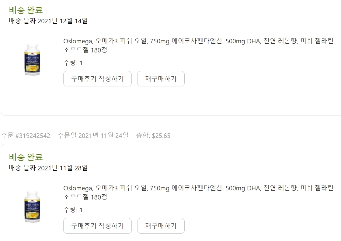오메가3는 기존에 복용하고 있던 제품이 아직 있어 구매하지 않았다.