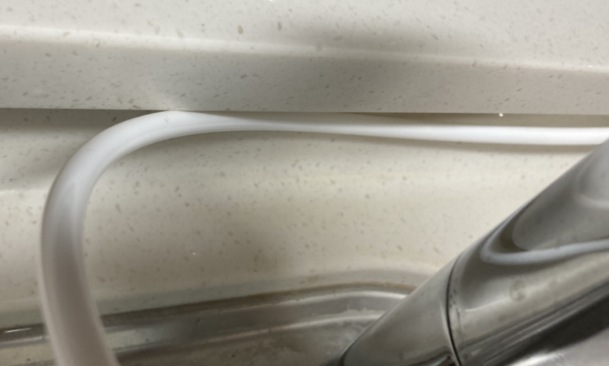 호스를 최대한 길게 빼서 싱크대와 멀리 설치했다.