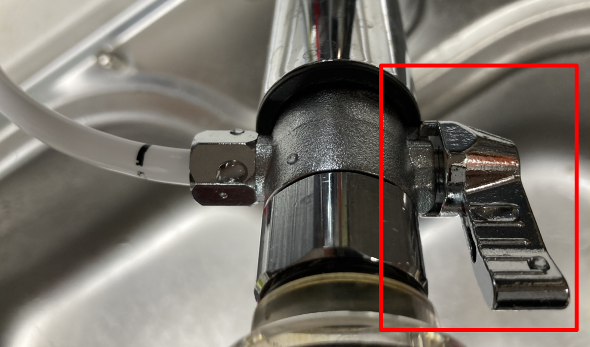 싱그대 수전에 자가로 설치한 모습이다. 저 레버를 닫으면 싱크대로 물이 나오고 닫으면 정수기로 물이간다.