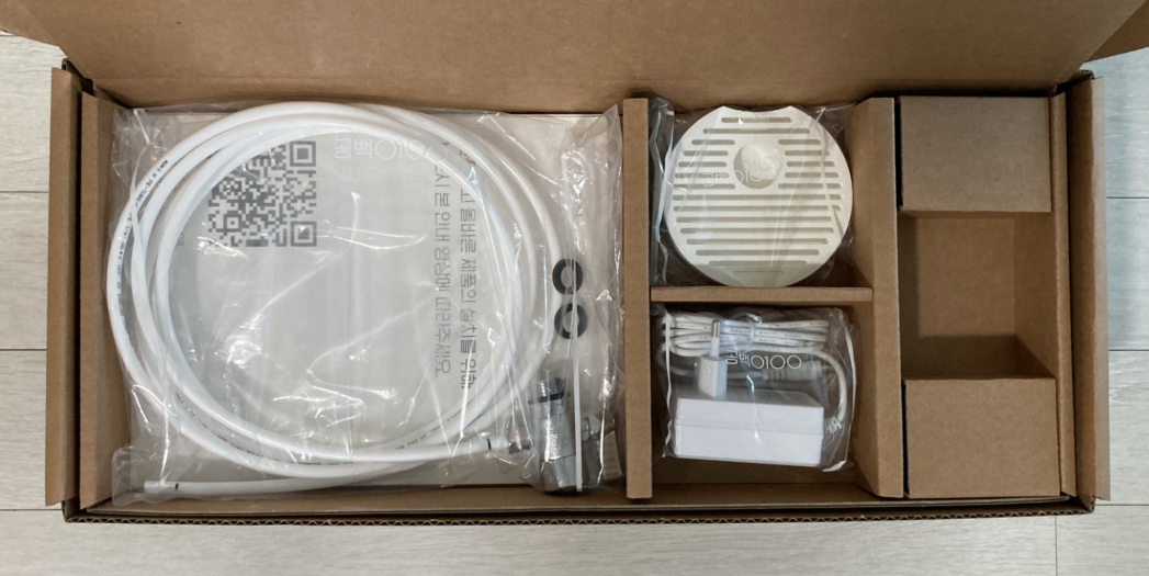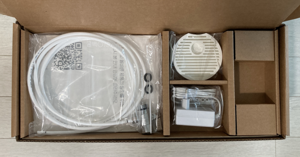 구성품이다. 설치 시 호스의 길이가 상당히 중요한데, 대략 3미터 정도 되는 것 같다. 호스를 절단하지 않고 그냥 설치했다.