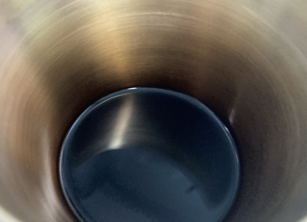 방짜유기에 아메리카노를 담으면 처음엔 입을 못 댈 정도로 뜨겁다. 열전도율이 너무 좋아서인데 호호 불어 식혀서 마시면 된다.