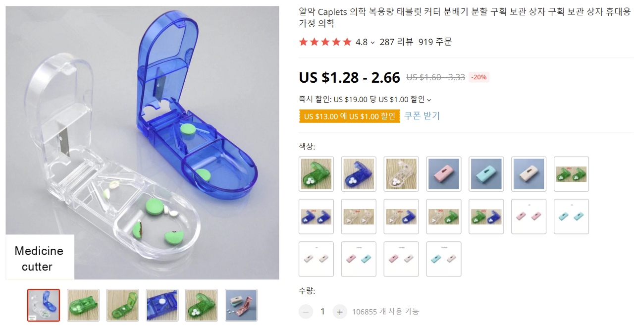 알리익스프레스에서 구입, 알약절단기 후기
