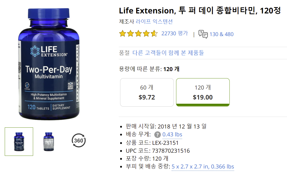 종합비타민도 잘 구입하면 알약이 작은 것을 구입할 수 있다. 아무 생각없이 구입하면 상당히 큰 알약이 올 것이다.