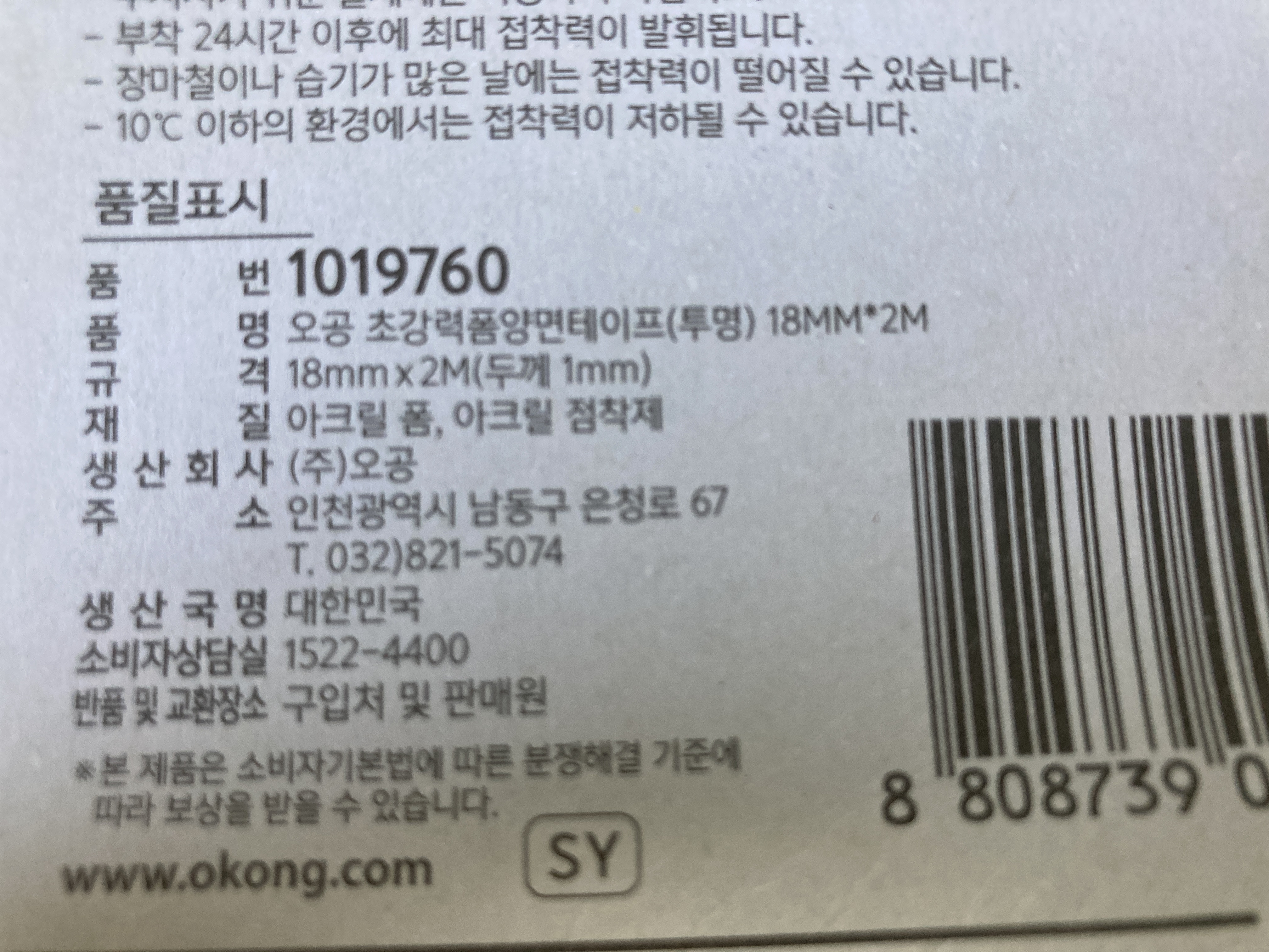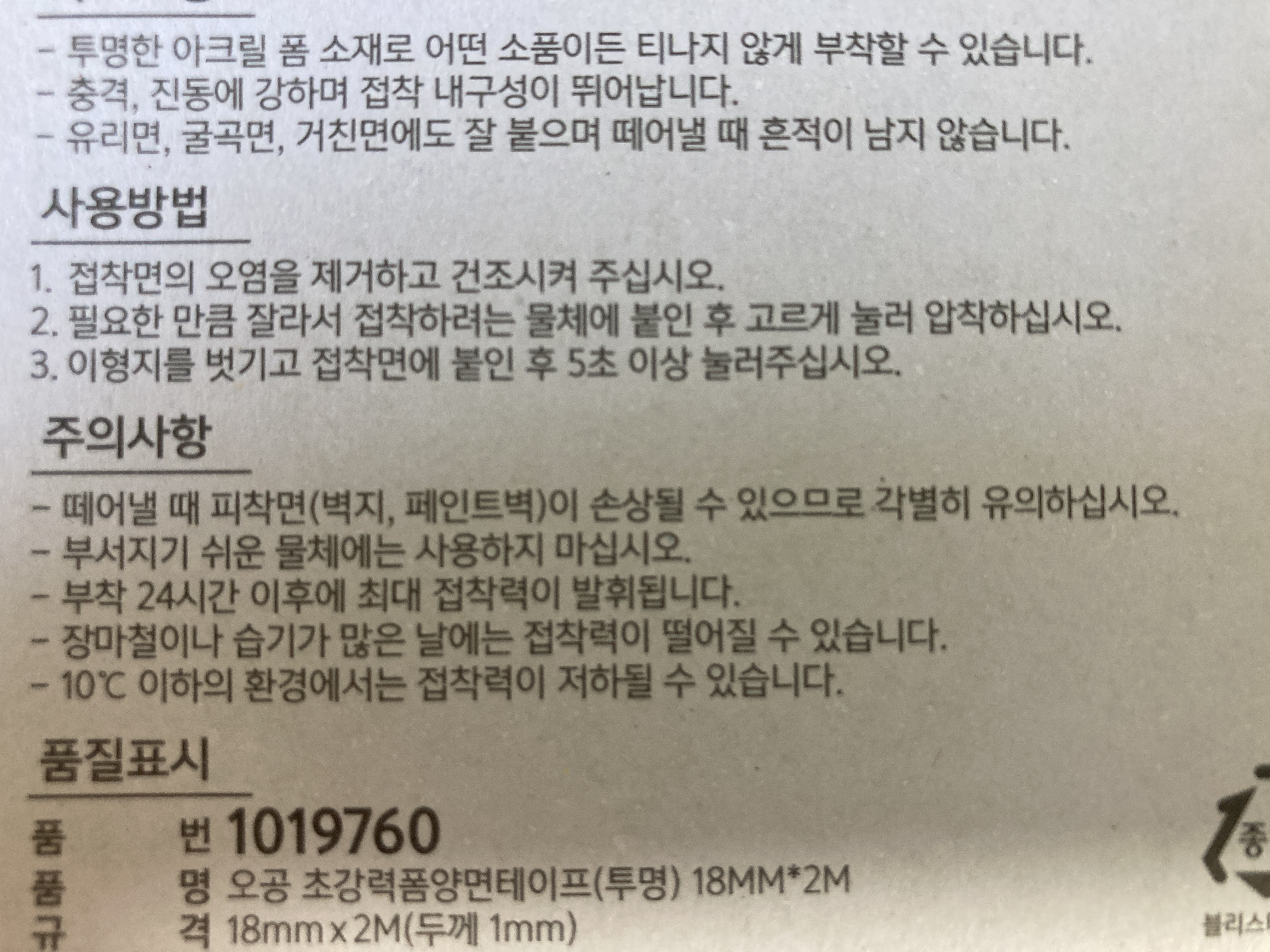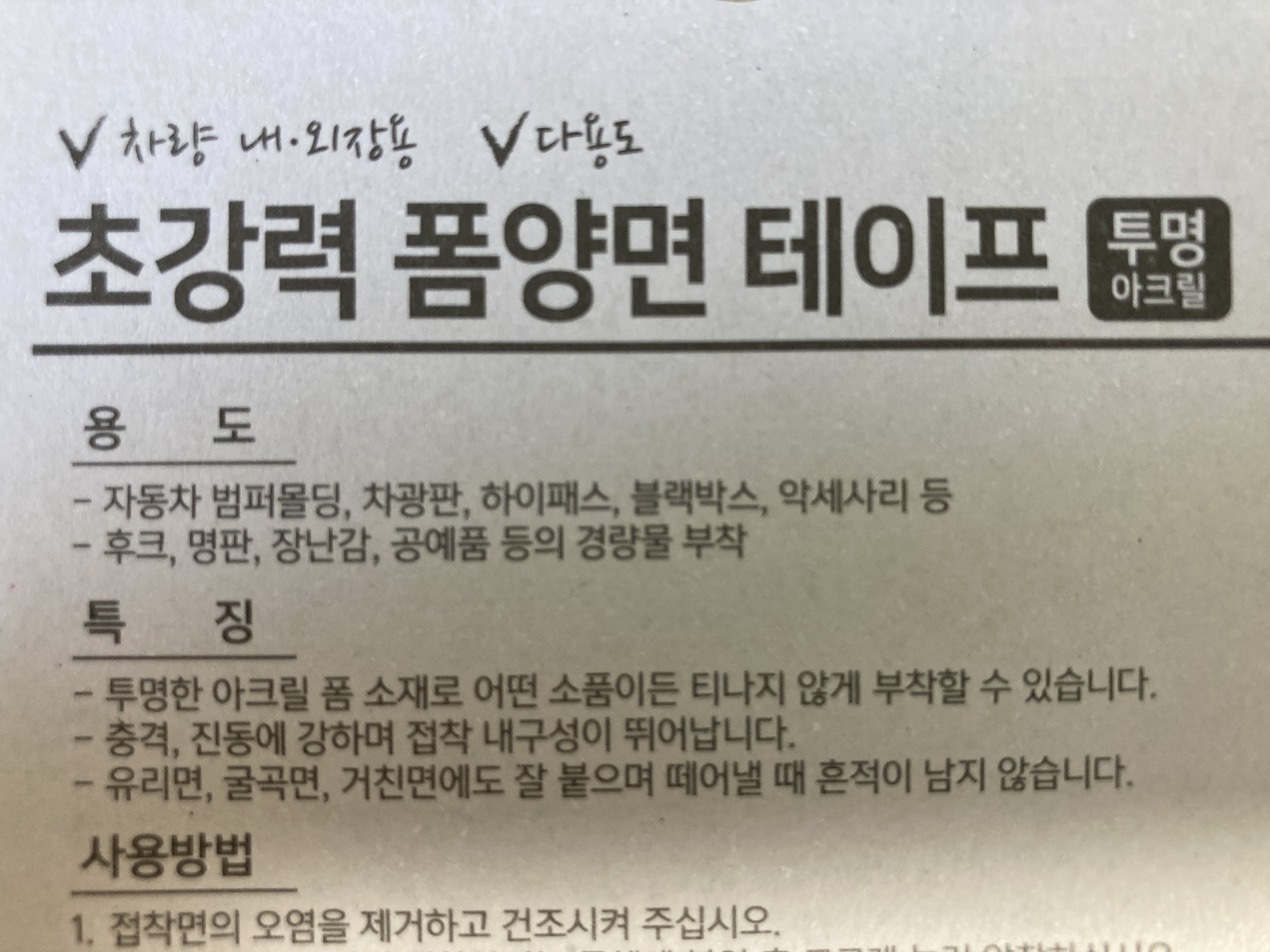 오공 초강력폼양면테이프(투명)은 2미터에 2천원이다.