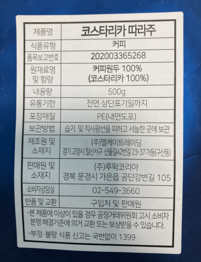 #원두커피 #원두구매 #루왁코리아 #커피원두 #싱글오리진 #로스팅원두 #엘케이트레이딩 #코스타리카 #마티닐라 #따라주