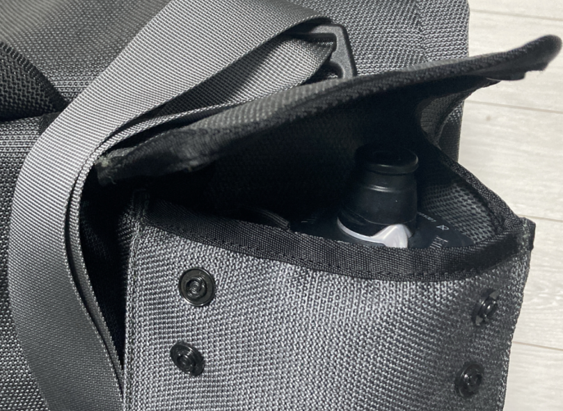 오른쪽 물통 포켓은 이중 구조로 되어 있다. 안쪽에 물통을 넣으면 저 정도 깊이로 들어간다. 바깥쪽은 더 깊게 들어가게 되어 있다.