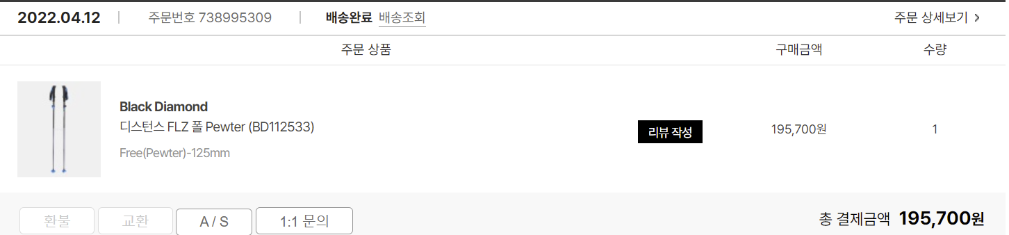 블랙다이아몬드 디스턴스 FLZ 폴 Pewter (BD112533) 구매 후기