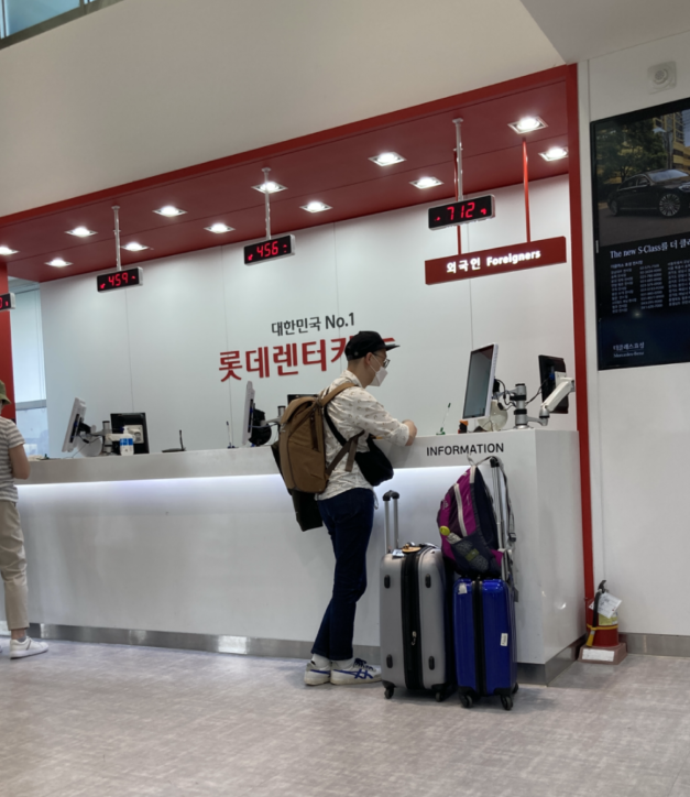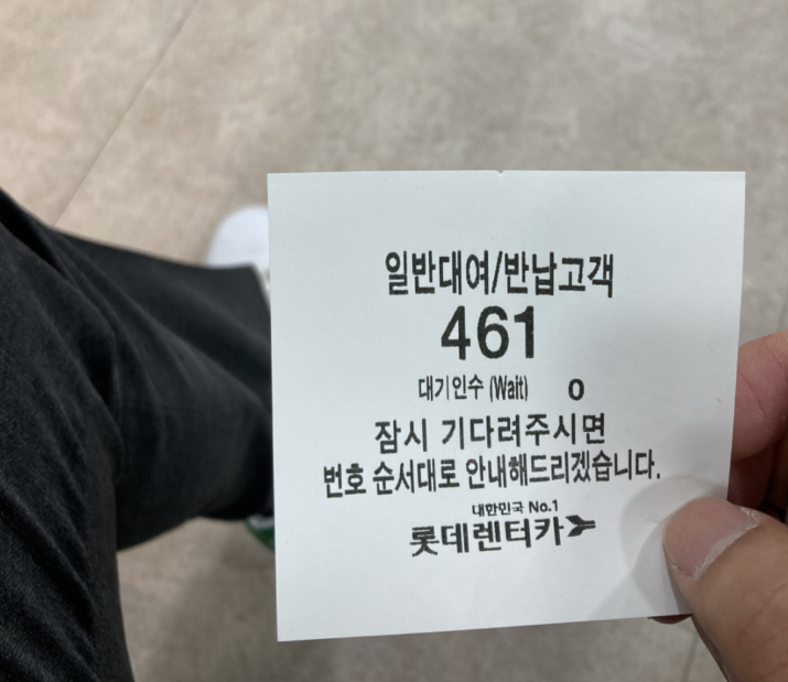제주공항에 도착 후 2번게이트로 가면 롯데렌터카 안내소가 있다. 이름 말하고 도착 했음을 직원에게 알림한다.
