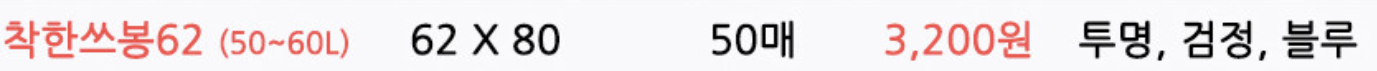 착한쓰봉62는 50리터로 재활용 쓰레기통 내부 감쌀 때 사용한다.