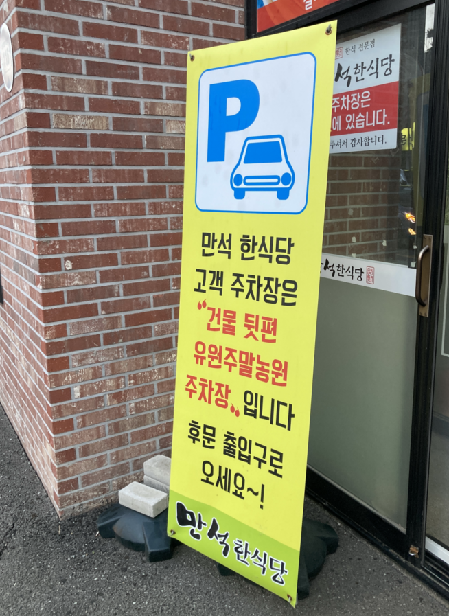 만석한식당은 앞에도 주차공간이 있지만 협소히기 때문에 뒷편에 넓은 공간에 주차할 수 있다.