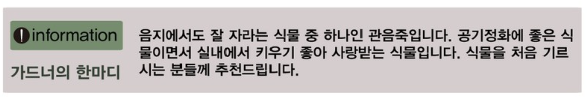 식물위치 : 거실, 베란다 적합하며, 아파트의 저층에 어울린다.