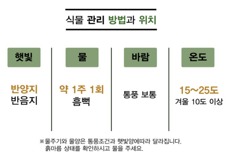 키우는 방법도 어렵지 않아서 물만 잘 주면되는 것 같아요. 반그늘이기 때문에 햇빛에 노출되면 안될 것 같네요.
