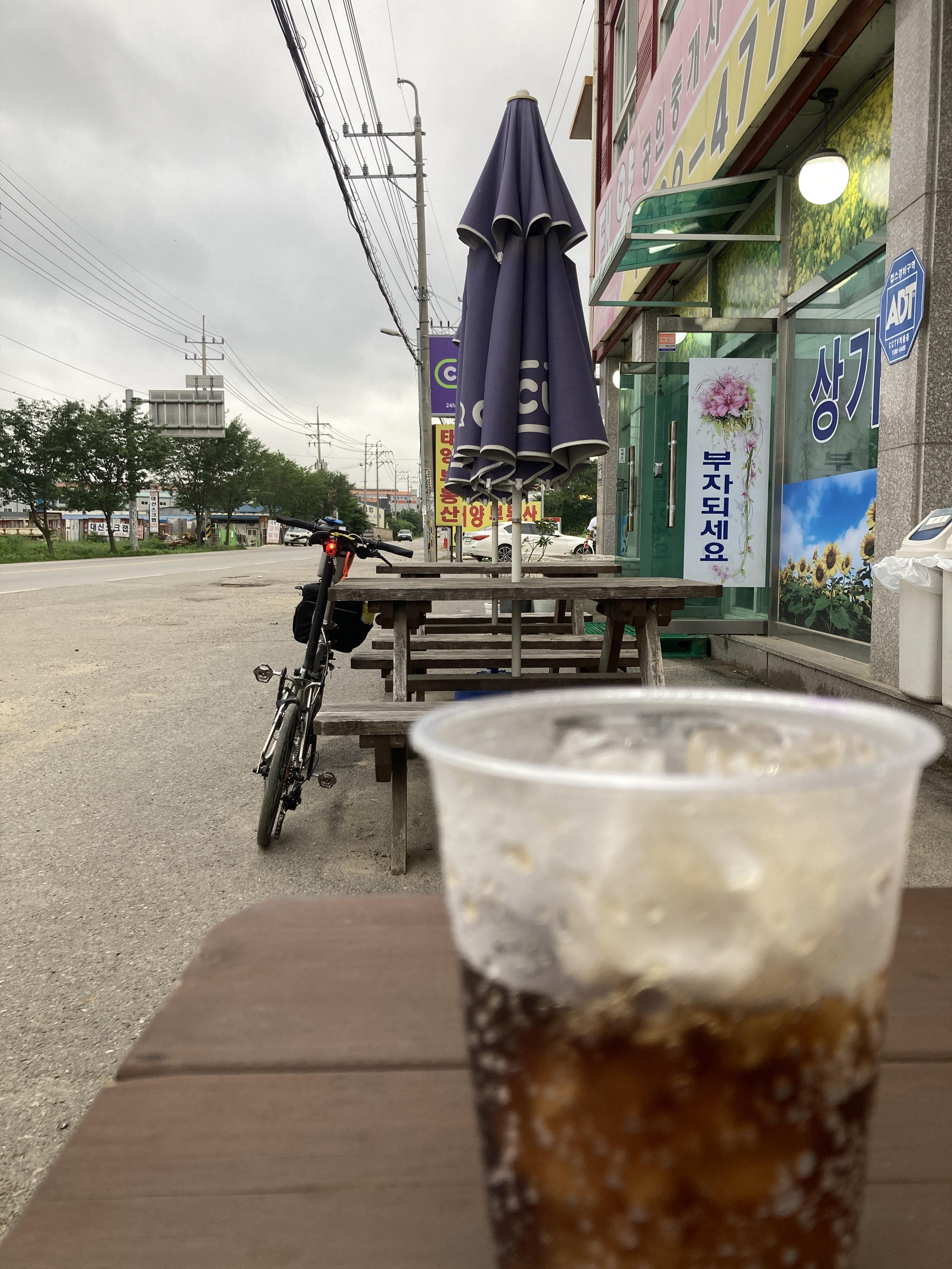 안양천합수부에서 약 70킬리미터를 가면 첫 편의점이 나온다. 길 건너에도 GS25가 있다.