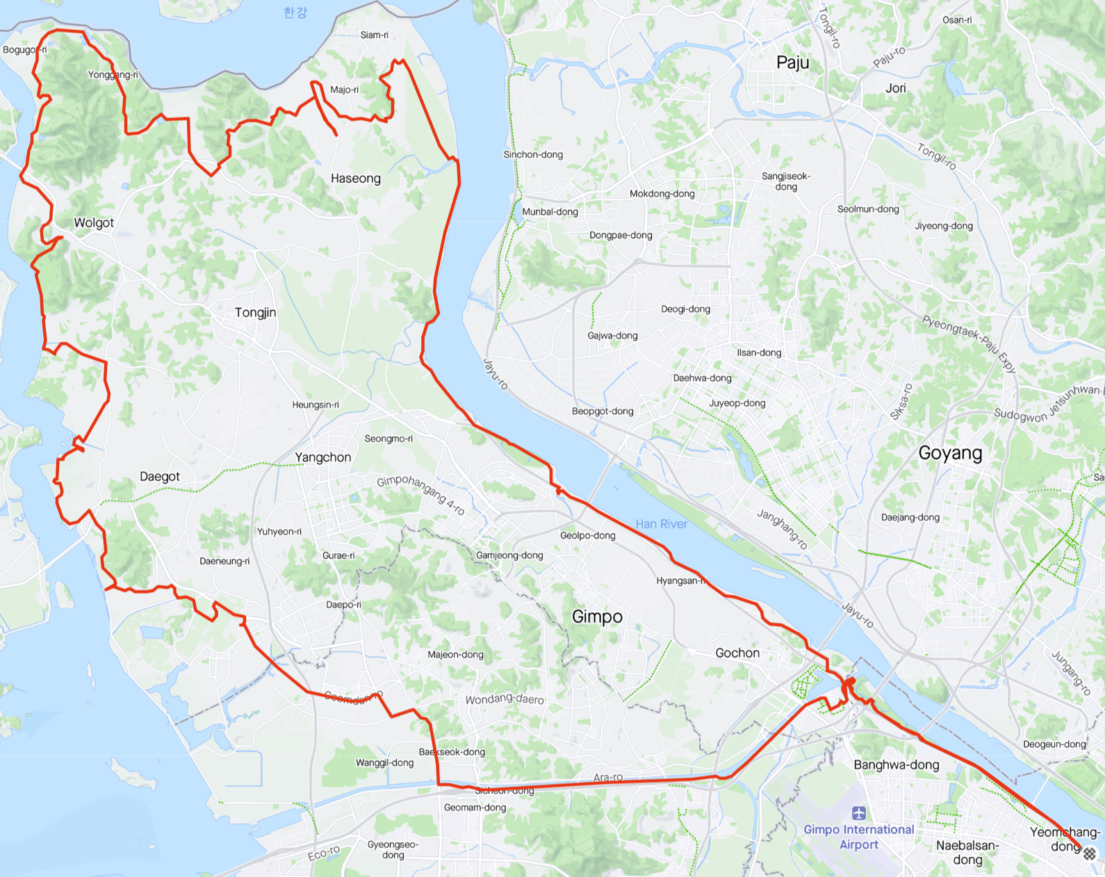 평화누리자전거길 라이딩 완료 후 김포를 경유할 때 공사 구간이 있어서 gpx 파일 부정확한 부분이 있습니다.