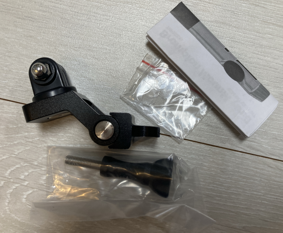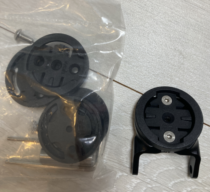 고프로 마운트인데 브롬톤 스템에 연결하게되요. 저기 중앙의 나사를 분리해서 속도계 브라켓에 동봉된 나사로 교체 후 속도계 마운트와 결착하면 되요.