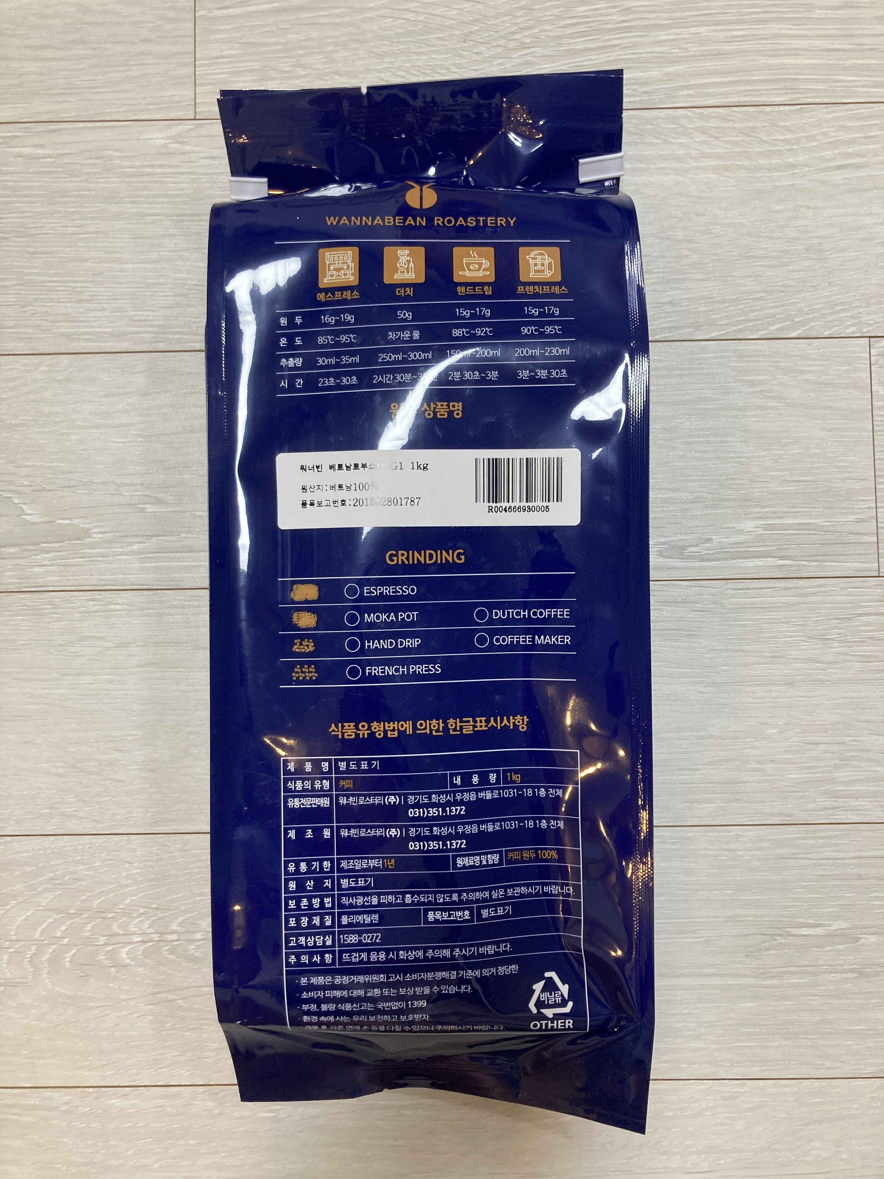 이젠 다시는 베트남 원두는 구매하지 않을려구요. 제 입맛에 안 맞아요. 헛구역질이......