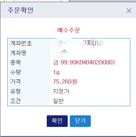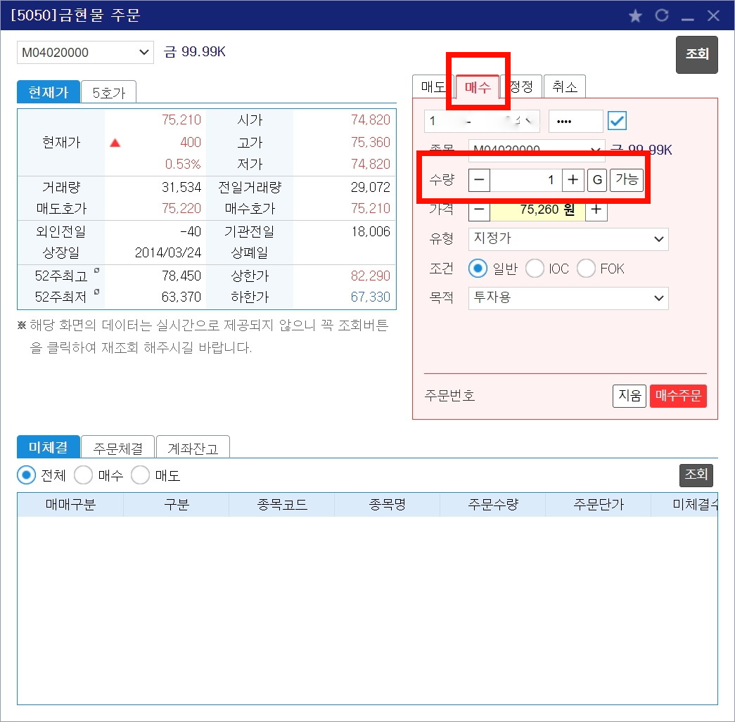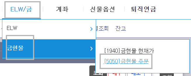 경로: 트레이딩 - ELW/금현물 - 금현물 - 금현물 주문