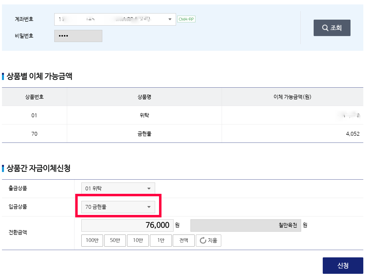 2. 매수할 금액만큼 ‘금현물'로 예수금전환