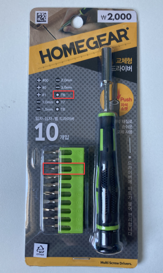 - T6 별렌치(외부 5개 나사 분리용), 다이소에서 구매 가능