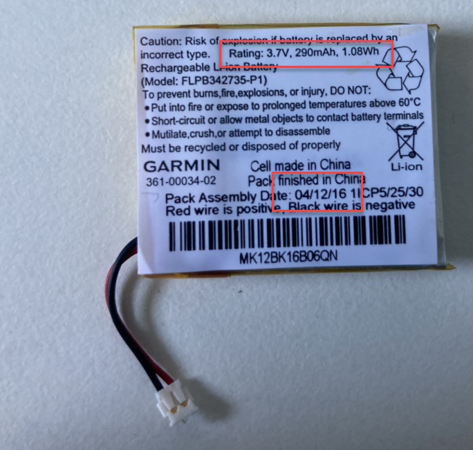 2016년 4월 16일 가민 피닉스3의 배터리가 장착된 것을 확인했는데 거의 6년을 사용했네요.