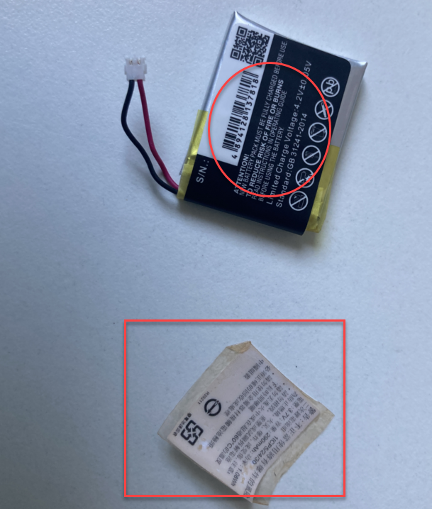 정품 배터리 탈거 한 것인데 사각형 부분의 양면 테이프가 배터리 동그란 부분에 붙어서 본체와 연결되어 있습니다.