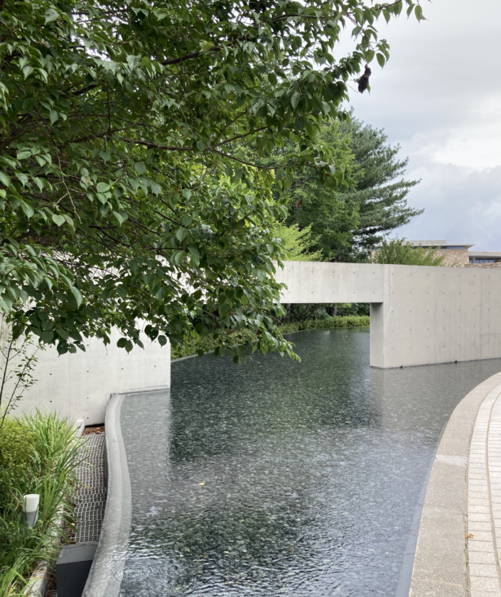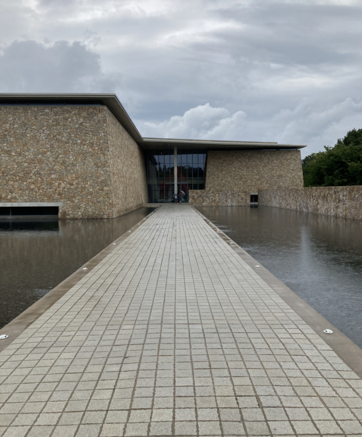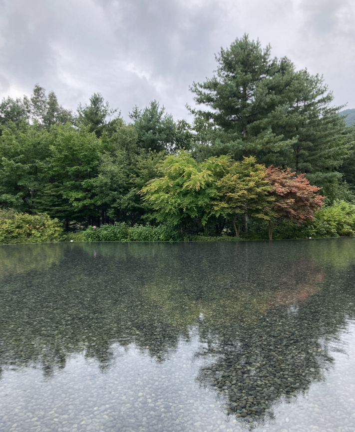본관 주변으로 얕은 연못처럼 수면이 빙 둘러쌓고 있다. 그래서 빛 반사가 일어나면 신비로운 느낌을 준다.
