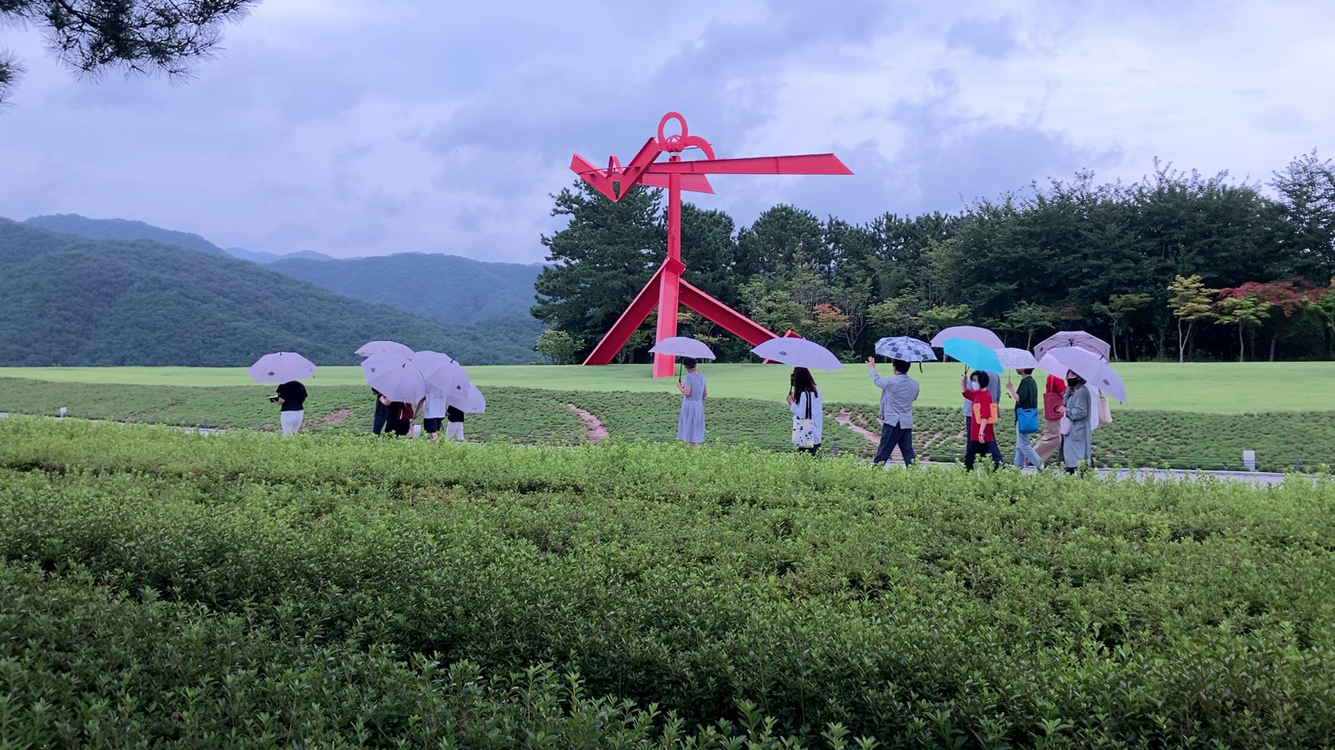 입구 부분의 야외 조각 작품들이다. 입구부터 음악이 흘러나와서 퇴장할 때 까지 나온다.