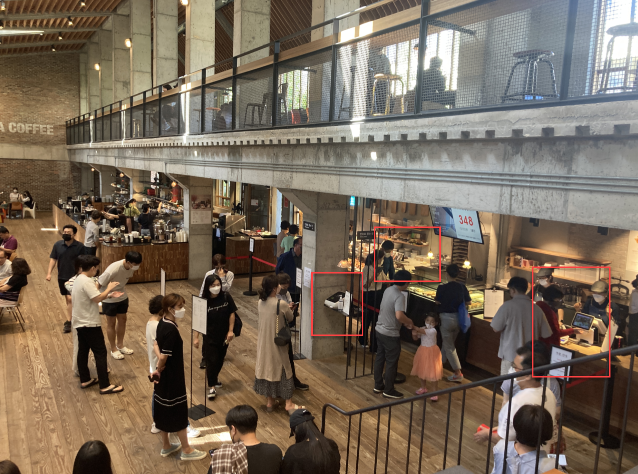 이런 시스템으로 돌아가기 때문에 혼잡하지만 혼잡한 느낌은 아니에요. 주문 장소와 커피 수령 및 반납 장소가 공간적으로 분리되어 있거든요.