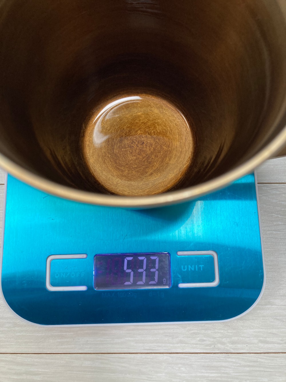 음료가 말랐을 때 방짜유기는 티가 안 납니다. 타타늄은 층층이 말라간 흔적이 남아있습니다.