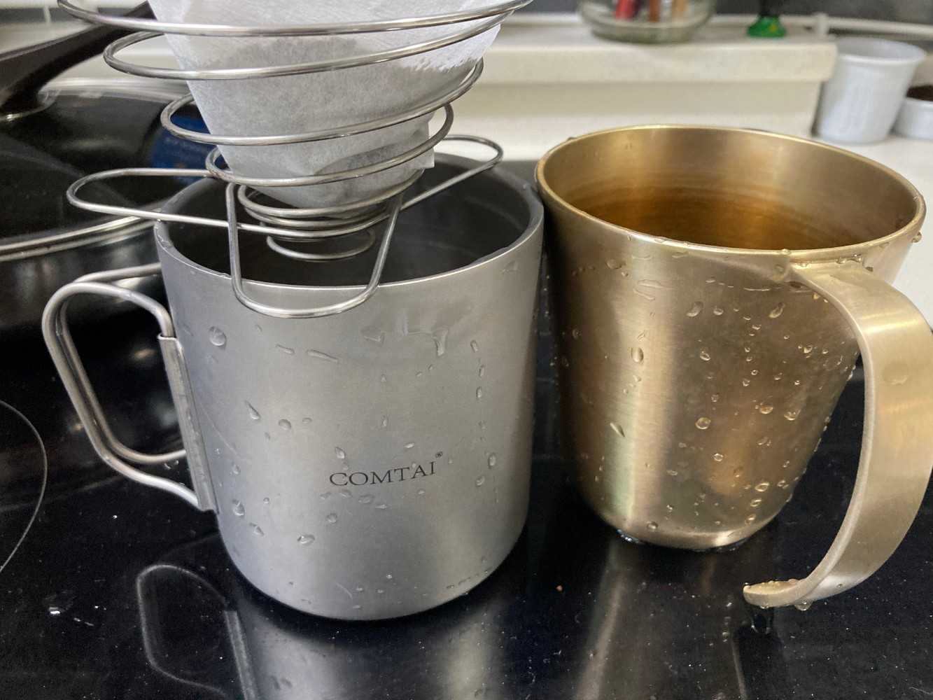 좀 더 큰 사이즈를 알아보다, 평소 관심이 있던 티타늄 머그잔을 구매했습니다.