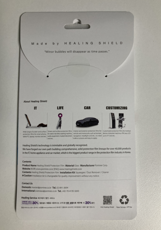 두꺼운 풀커버 타입으로 붙이기 상당히 수월했습니다. 보호 필름을 제거하고 상, 하 두 부분을 손가락으로 테두리를 잡고