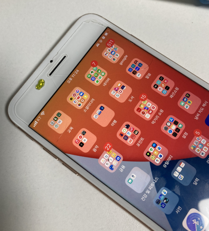 기존에는 전면부 일부만 보호하는 제품을 사용 중이였는데요. 깨져서 곳곳에 금이 갔습니다.