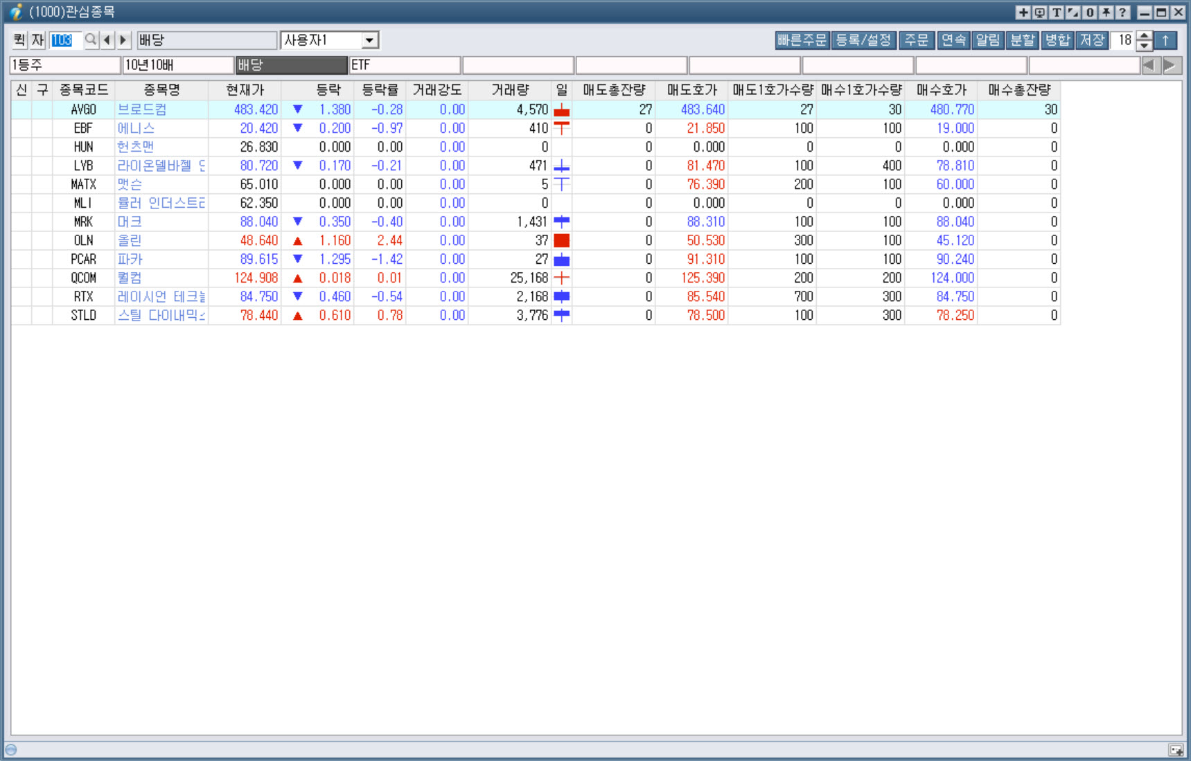 배당주는 미국 주식 중에 배당 잘 주고 수익성도 좋은 주식으로(미주은 참고) 선정 후 차트 안 좋은 주식은 제외했습니다.