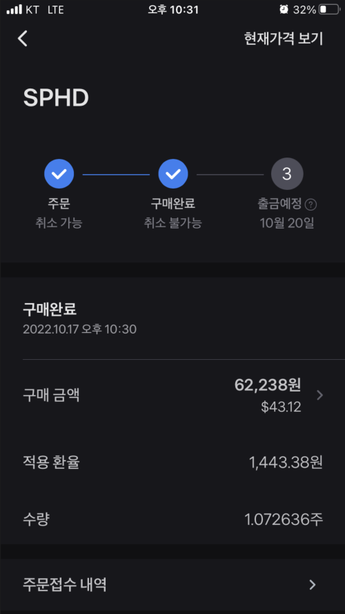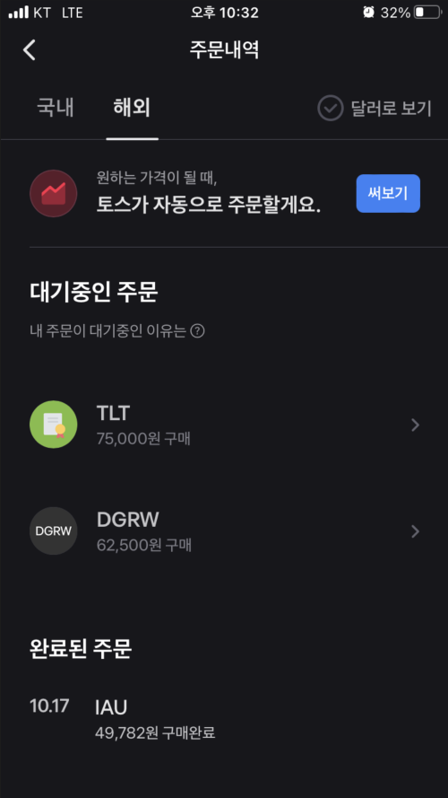 매수를 하면 바로 되지 않고 미국 주식 시장 개장 된 후 매수 됩니다. 그렇기에 단가가 맞지 않으면 매수가 안 될 수도 있겠죠.