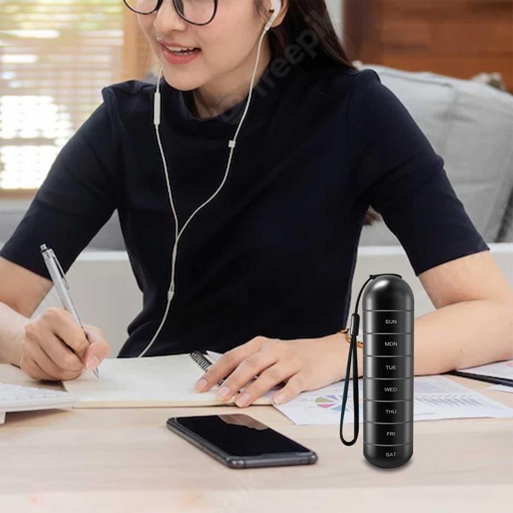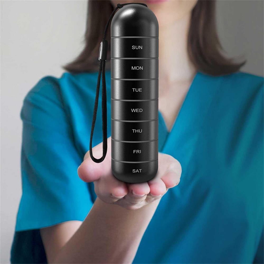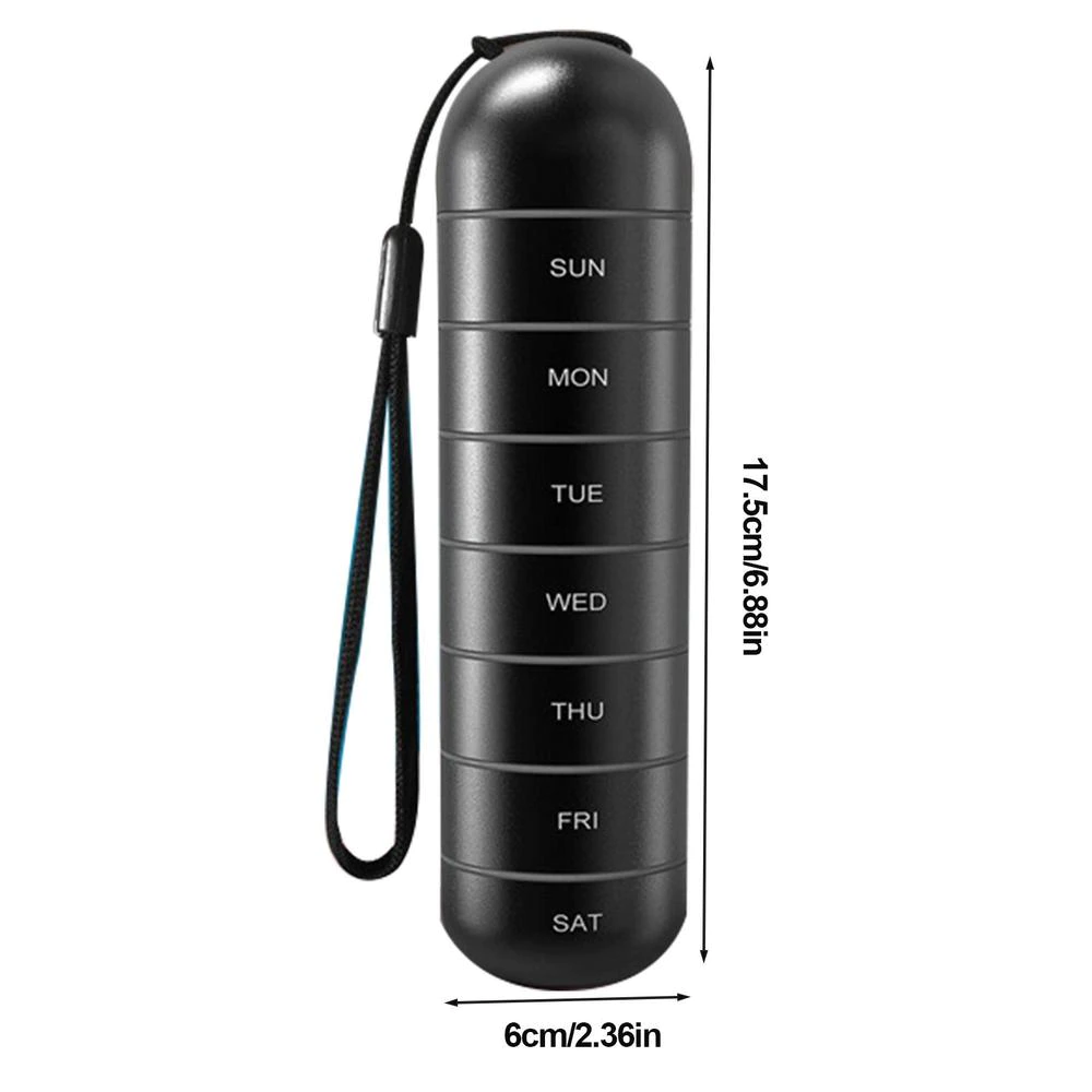 ✔ Upgraded Large Capacity - 7 roomy compartments for weekly pills, each compartment (diameter:1.7’’, height: 6.2’’) can hold maximum up to 8 fish oils or 10 large vitamins free you from worrying about no enough pills on one short trip and help you keep your meds organized comfortably throughout the week..