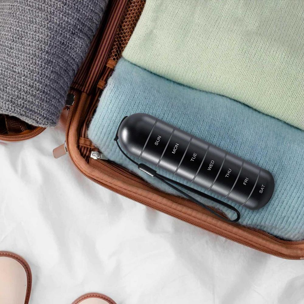 ✔ Easy to use - Easy to open and close stacked detachable rotating design compartments allow you to refill your pill organizer quick and timeless, while the detachable cover design makes it easy for you to clean the pill box. 7 separate compartments and eye-catching and fadeless date labels on the outside of the compartment allow you to quickly select the right date and required pills..