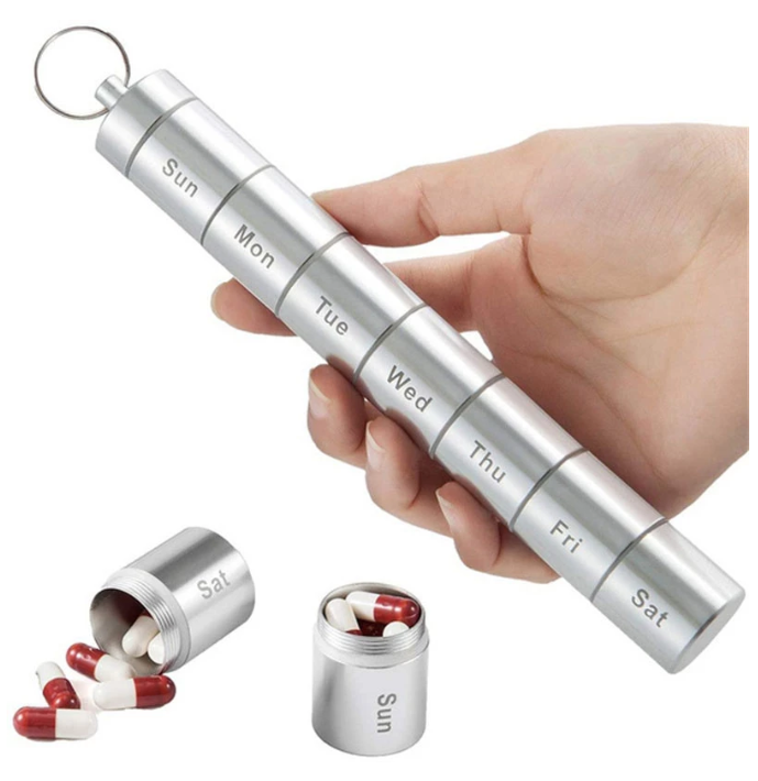 ✔ Premium Medical Aluminum Alloy - Instead of using cheap plastic, our vitamin organizer is made with BPA Free, reinforced shockproof durable Medical Aluminum Alloy, which is harmless, lightweight but sturdy. Say goodbye to flimsy plastic containers, no more unexpected crashes, and choose a safe, strong house for your pills..
