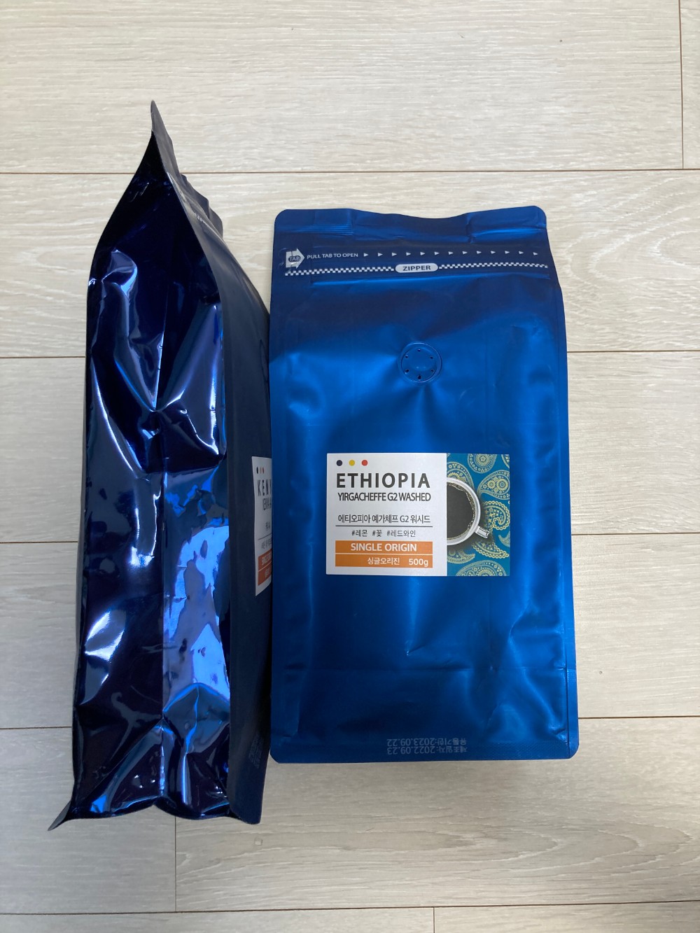 1kg을 구매하려다, 한 달 중 다른 맛을 보기 위해서 케냐와 에디오피아로 구매를 했죠.