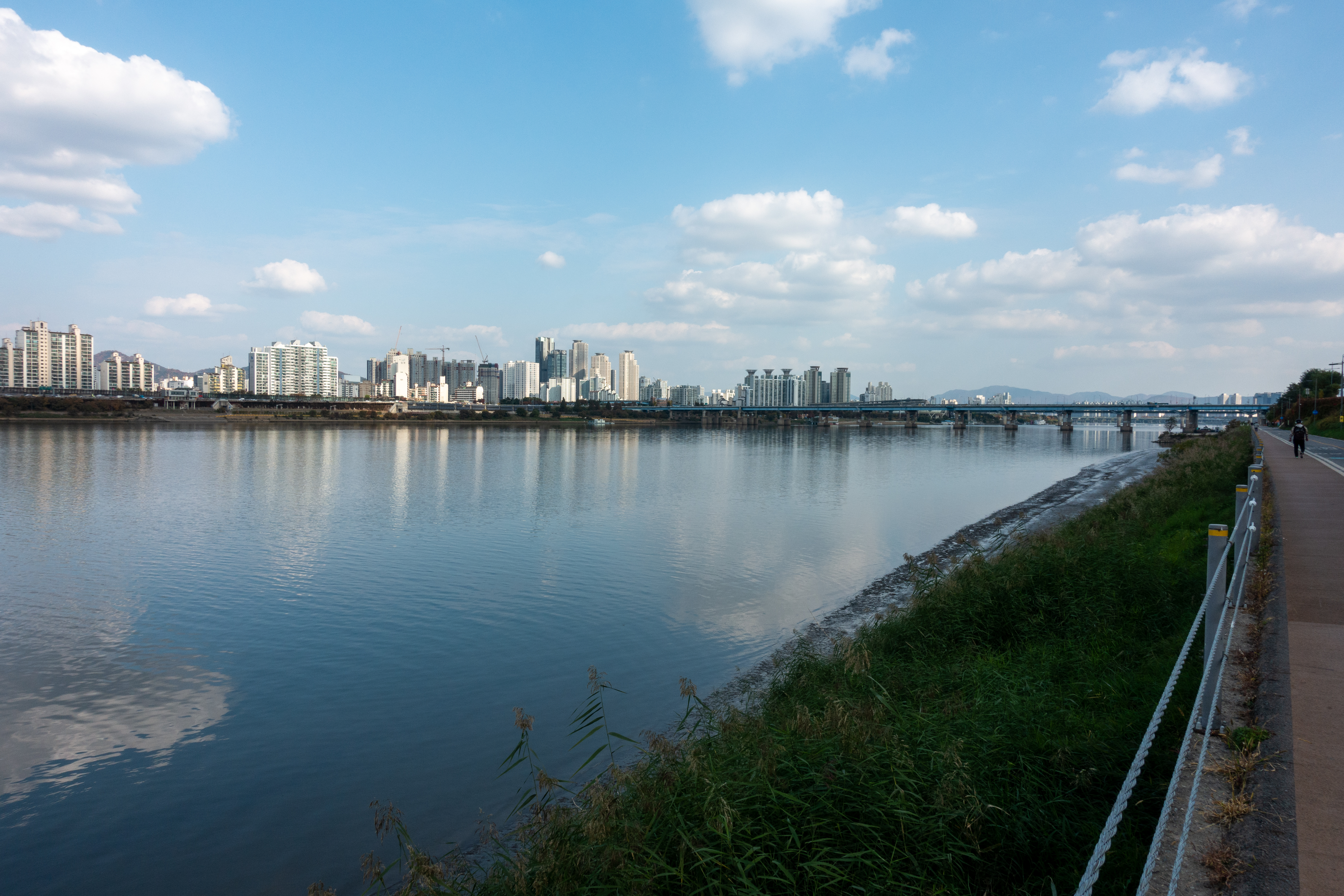 반포를 지나 잠실 탄천 방향으로 가다보면 한강의 멋진 모습을 볼 수 있습니다. 이 장소가 가장 좋은 것 같습니다.