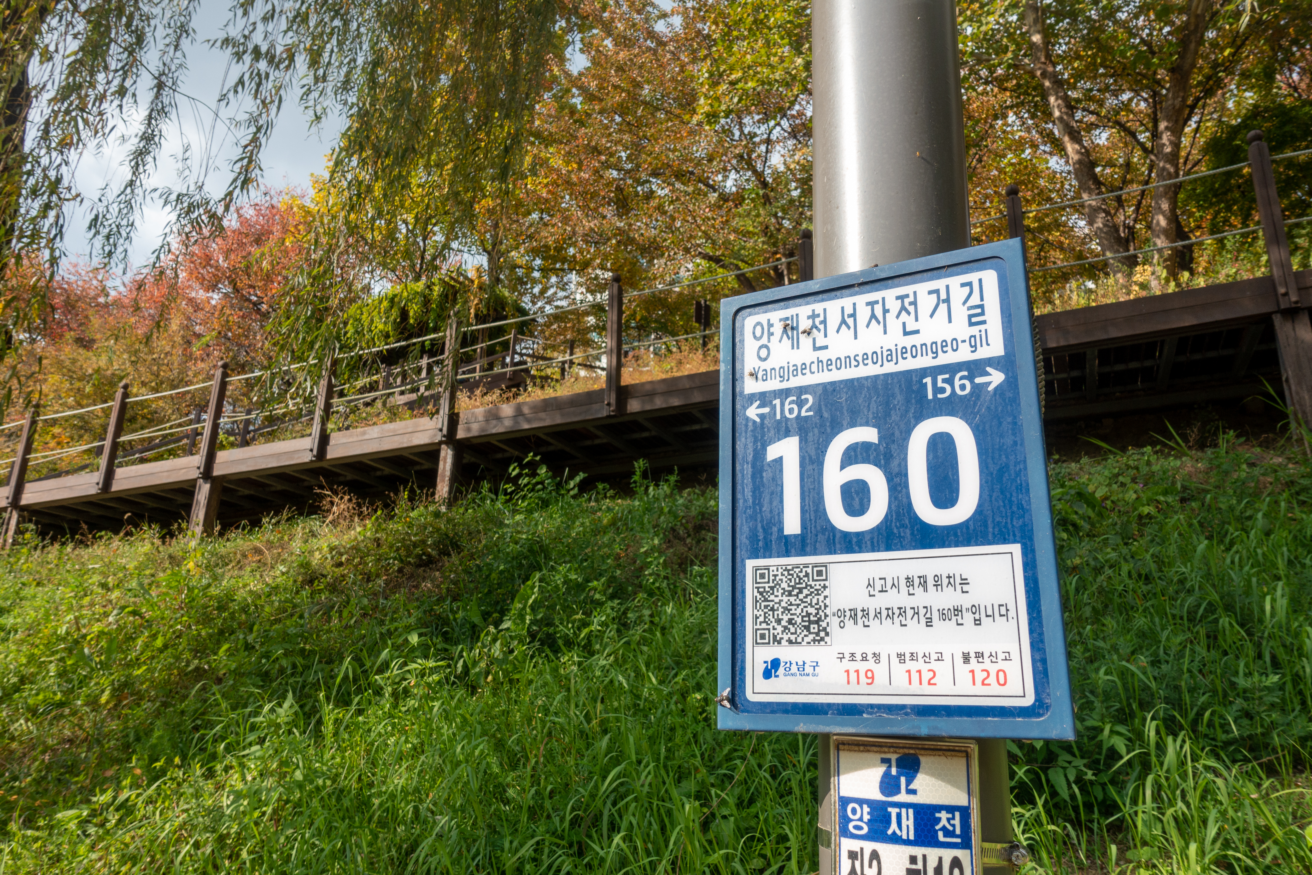 탄천을 지나 양재천 자전거도로를 경유하는데, 도심지라 공기가 안 좋습니다.