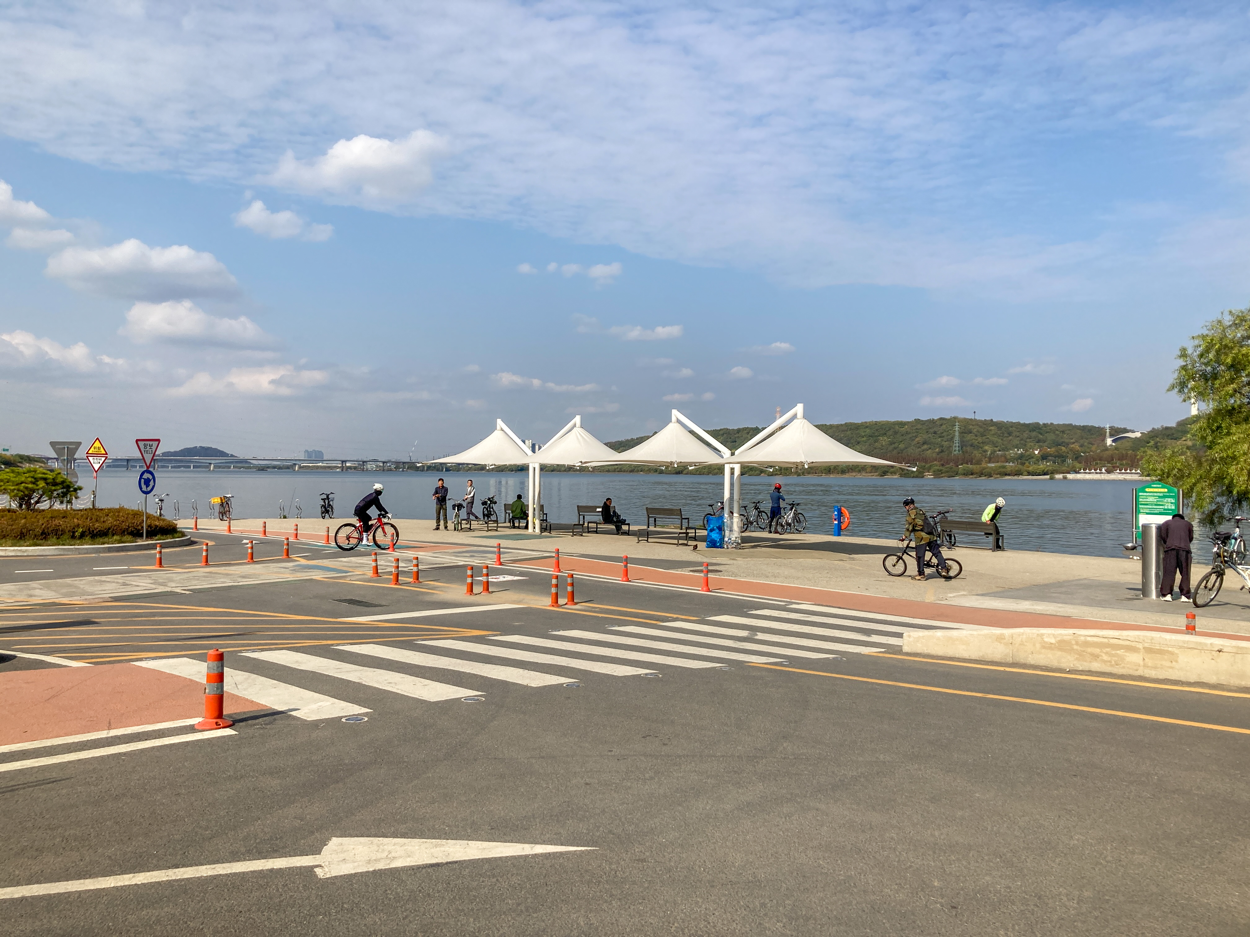 대부분 자전거도로로 편하게 라이딩이 가능합니다. 하지만 위에 표시한 구간은 공사 때문에 인도로 라이딩해야 합니다.