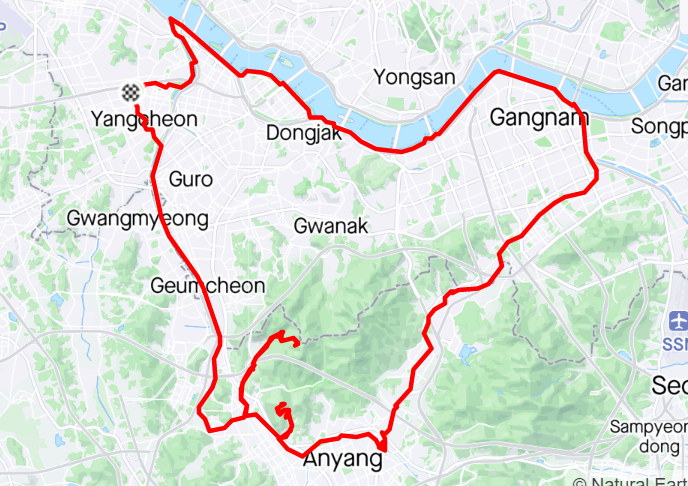 하트코스 라이딩 내내 공기가 안 좋았습니다. 공사와 도심의 차량들 때문에 그런 것 같습니다. 하트코스 당분간은 안 갈듯 합니다.